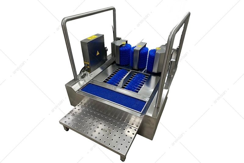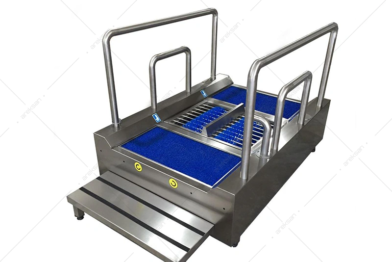 The Areksan AR-950 is a custom-engineered sanitation line developed for food production facilities operating with 100 or more personnel, where hygiene compliance must be addressed at a systemic level. The AR-950 is not a standard catalogue product; each unit is individually designed, manufactured, and commissioned following a dedicated engineering process that accounts for the facility’s personnel capacity, shift structure, production flow, and physical site conditions.