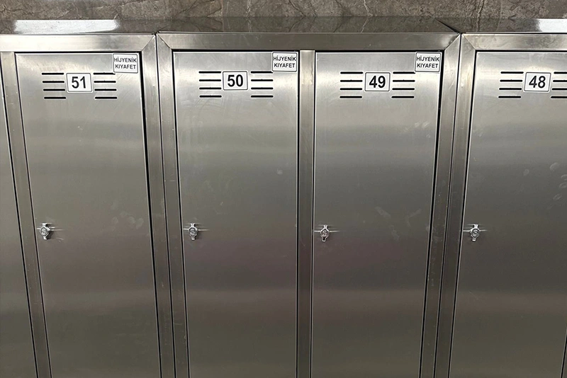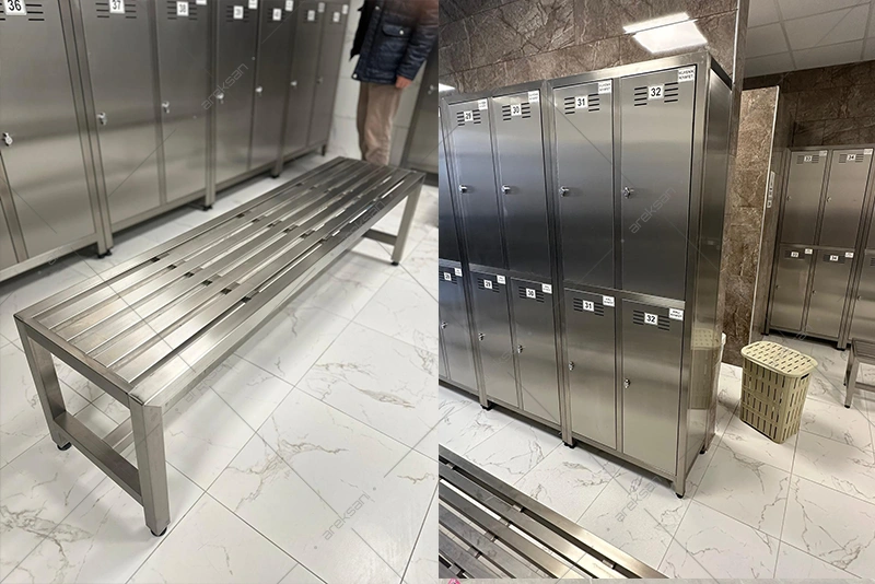 The Areksan AR-HJSD is a personnel changing locker fabricated from 304-grade stainless steel, available in a standard four-compartment configuration and custom-manufactured to the spatial and operational requirements of each facility. Designed for food production plants, hospitals, industrial facilities, sports centres, and all institutional environments where hygiene and durability are primary equipment criteria, the AR-HJSD is available in single-door, double-door, and multi-compartment configurations to suit varying personnel capacities and floor plan layouts.
