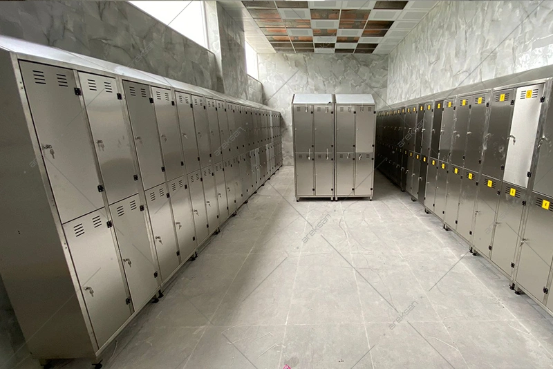 The AR-HJSD is produced as standard in a four-compartment configuration. Compartment count, overall height and width, and door configuration can all be customized to match the facility’s personnel headcount, available floor area, and workflow requirements. Single-door, double-door, and multi-compartment options address different operational scenarios. Each compartment is fitted with a lock mechanism, enabling personnel to secure personal belongings and work clothing independently.