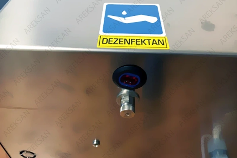 The photocell sensor automatically initiates disinfectant output when hands are detected. Dispensing is carried out through 304-grade stainless steel nozzles. Each activation delivers approximately 3–5 ml of alcohol-based disinfectant. No contact with any surface is required at any stage.